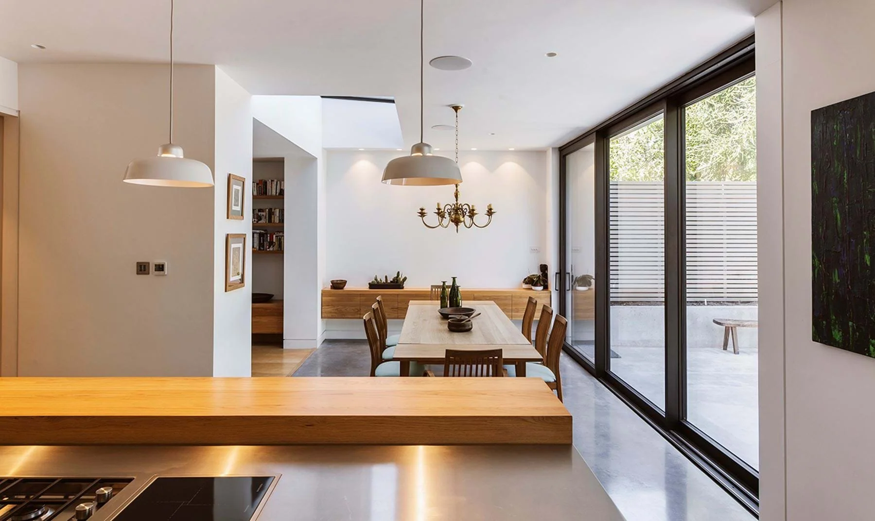 This North London property underwent a full renovation and complete basement construction, transforming the home from top to bottom. The project included a full basement dig-out, new bathrooms, total electrical rewire, new plumbing system, and re-plastering throughout. We supplied and installed premium oak flooring and crafted a bespoke solid oak staircase with exposed treads and a continuous slatted oak handrail, A standout architectural feature running through the entire property.