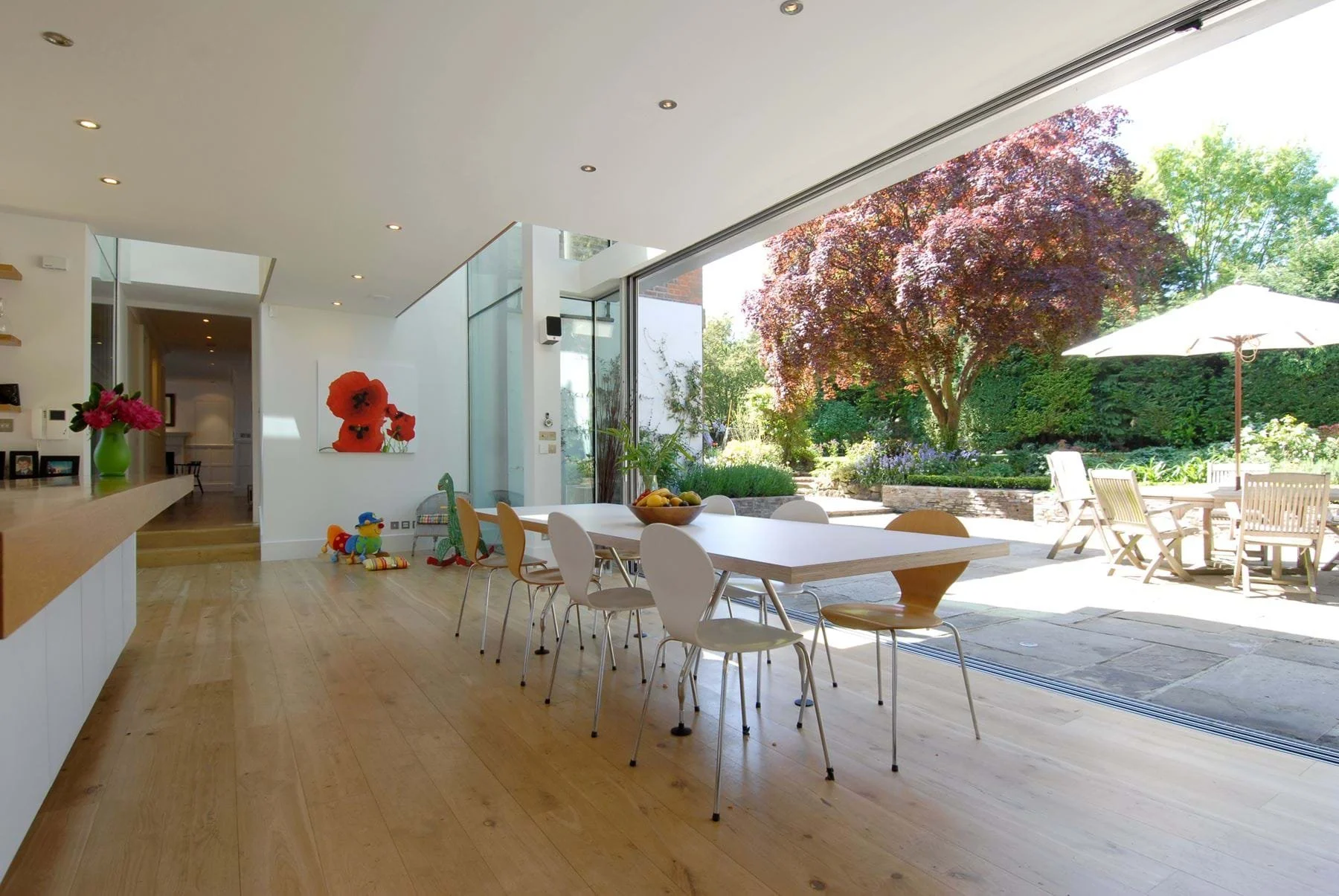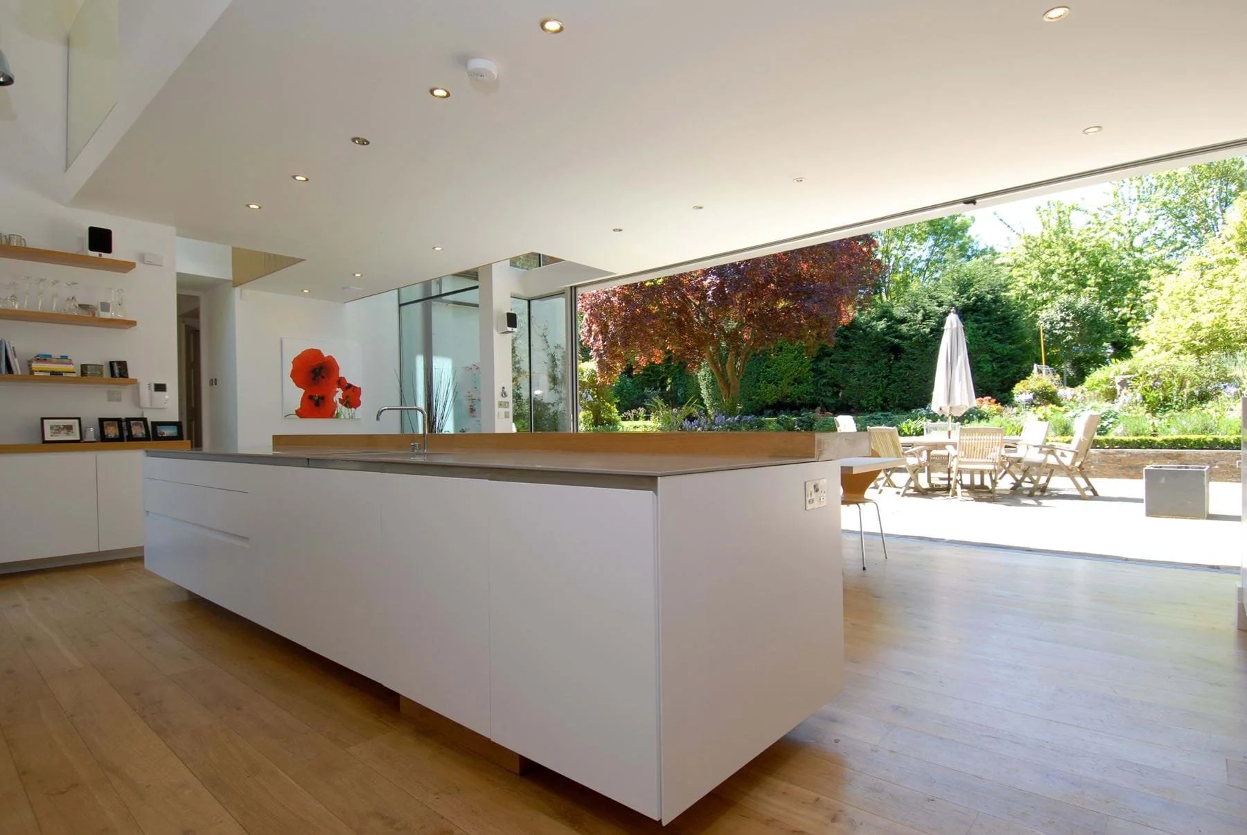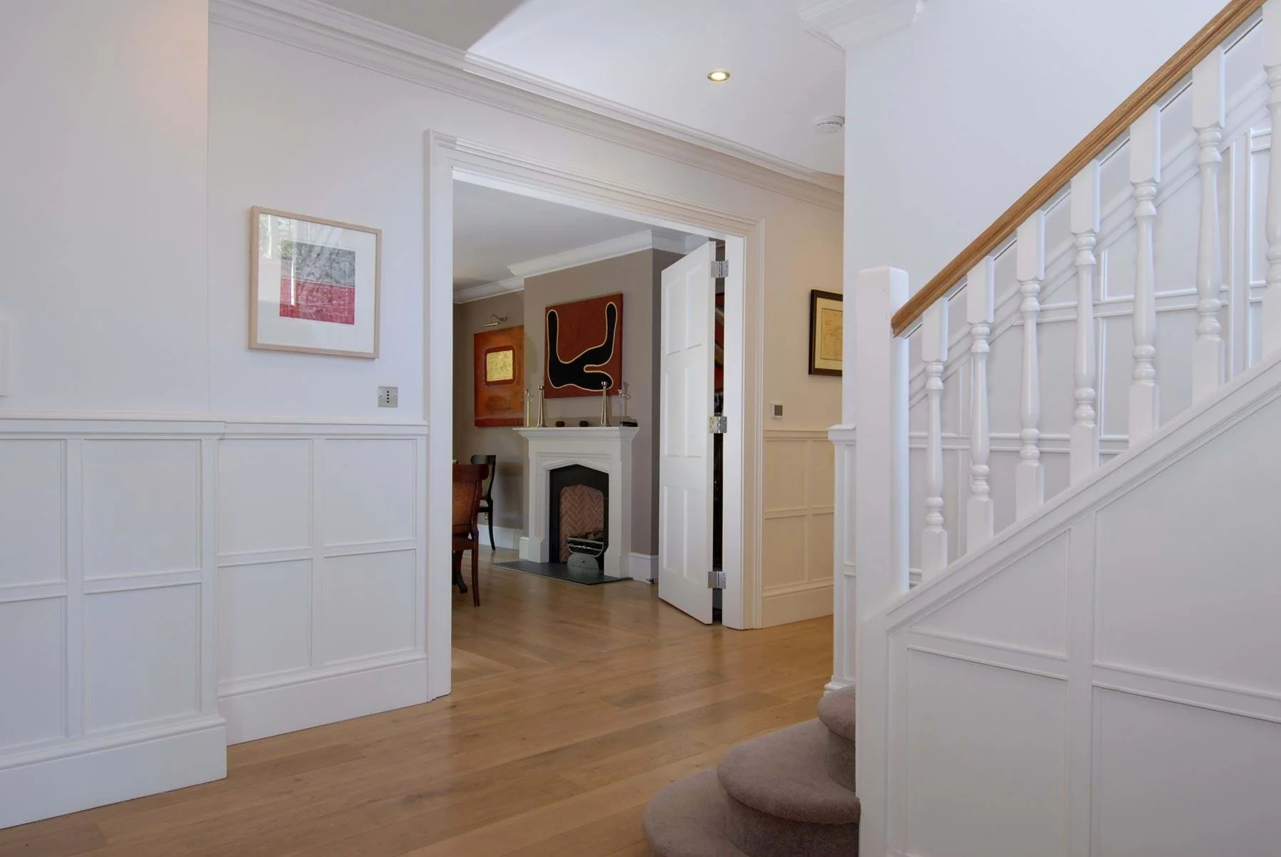 A landmark two-storey mega extension that doubled the footprint of this already substantial Buckinghamshire property. This project combined the charm of the original home with a bold, contemporary new wing, connected by a striking glass walkway that links the old and new structures over a full basement level.
