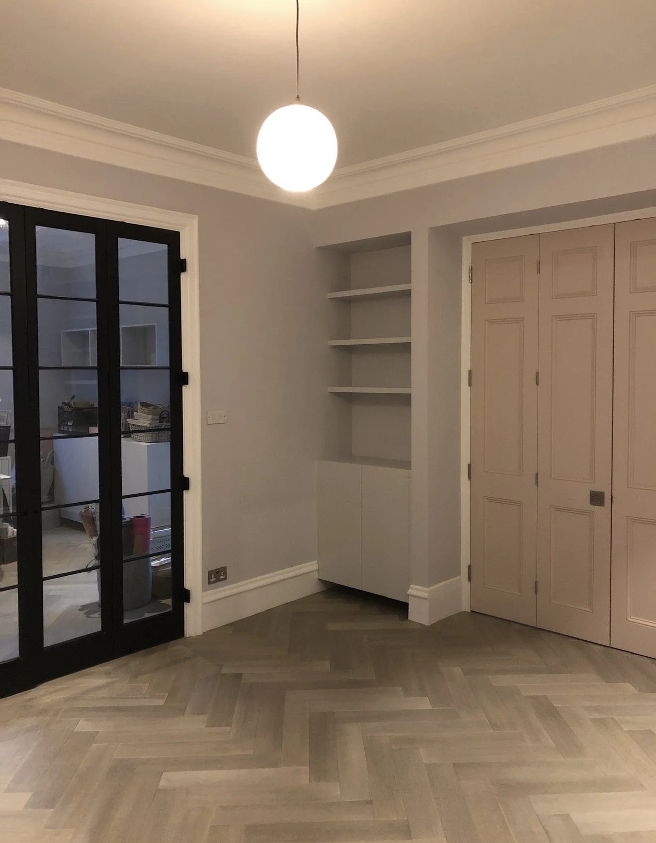 This derelict property was transformed into a showroom-level home in every room — one of our proudest projects to date. The refurbishment was a complete strip-out and rebuild, with every door, every piece of joinery, and every detail crafted by our team.