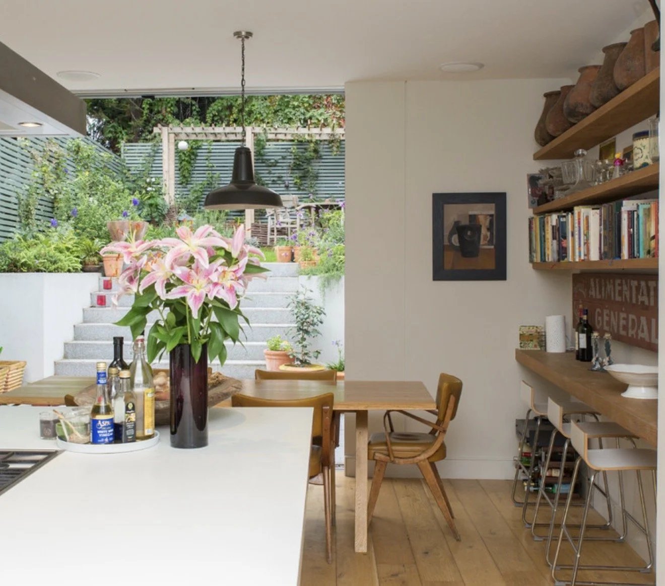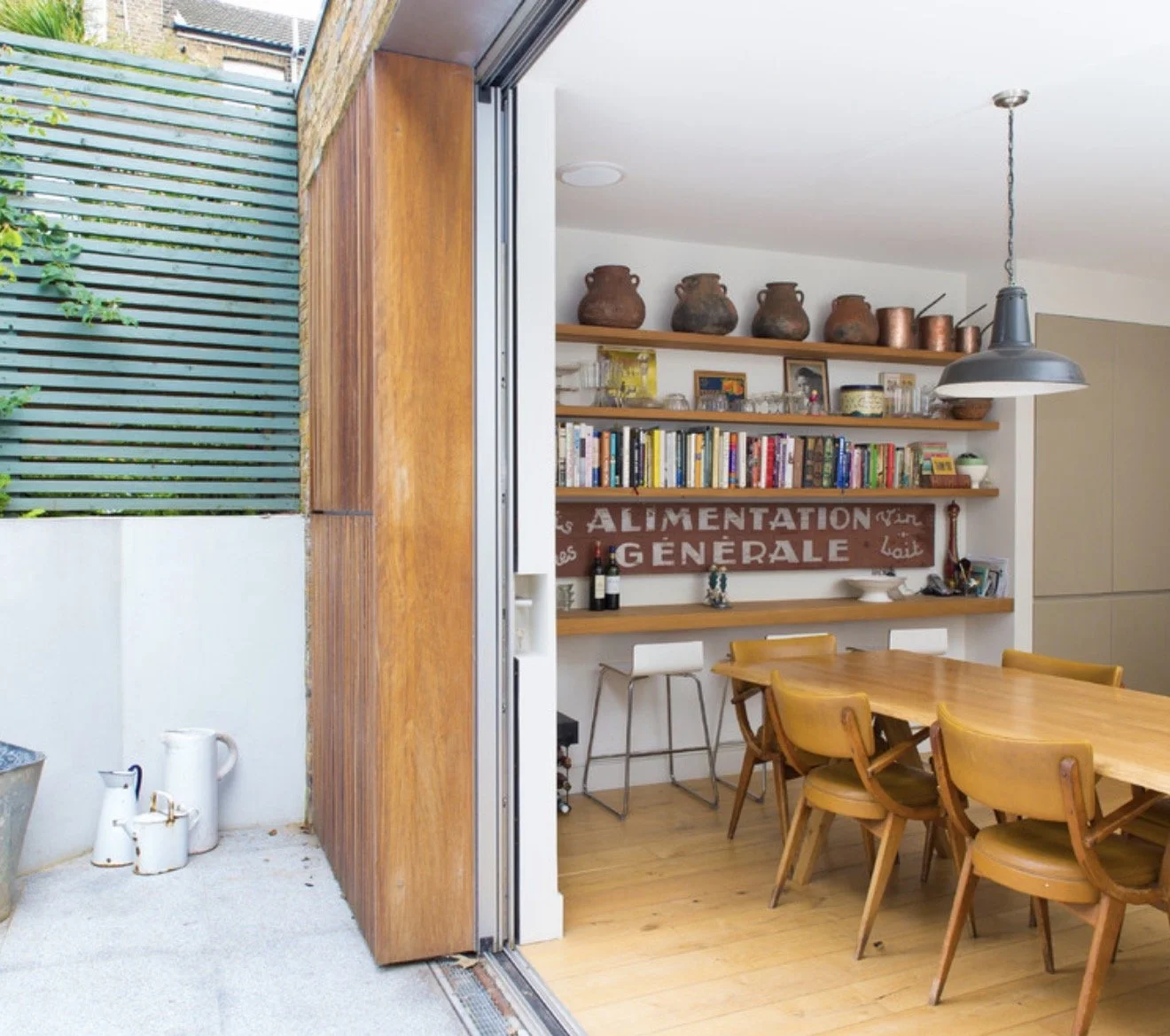 A compact but beautifully detailed extension that brought warmth, character, and modern functionality to this N19 home. The project features new oak flooring, a fully bespoke kitchen, and an Iroko slatted panel on the rear extension, designed to create a second screen for the sliding pocket architectural glazing doors.