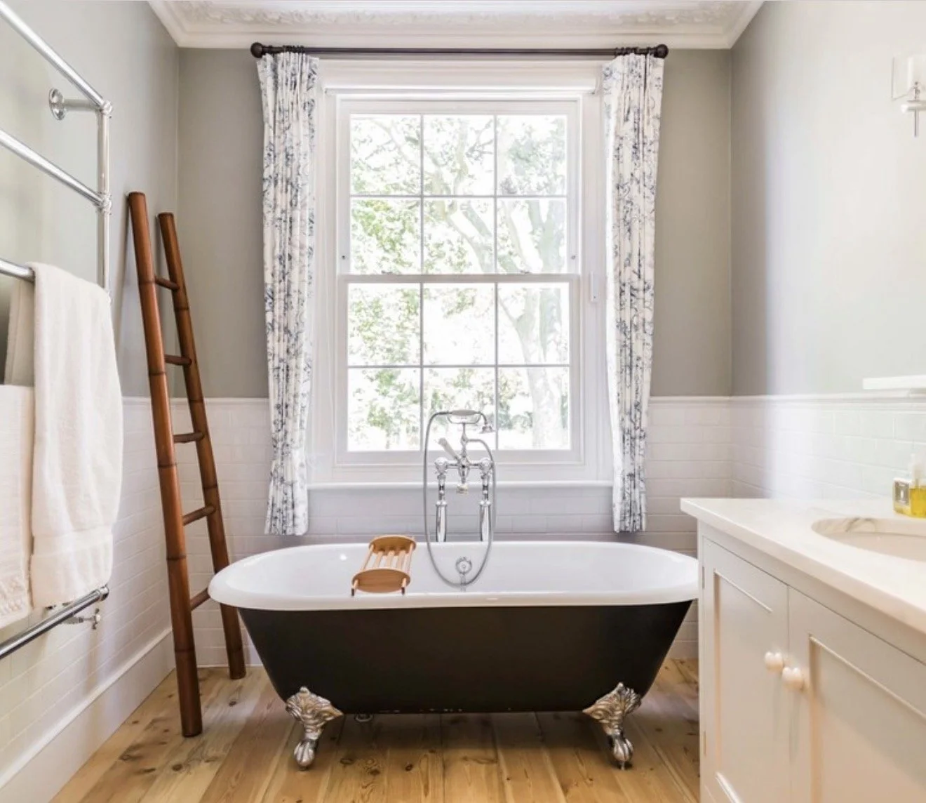 The kitchen was finished with premium York stone paving and framed by black Crittall-style doors, giving the home a strong architectural feel and a seamless indoor–outdoor connection. Throughout the property, modern systems, finishes, and design details were installed to bring the home up to today’s standards without losing its period character.